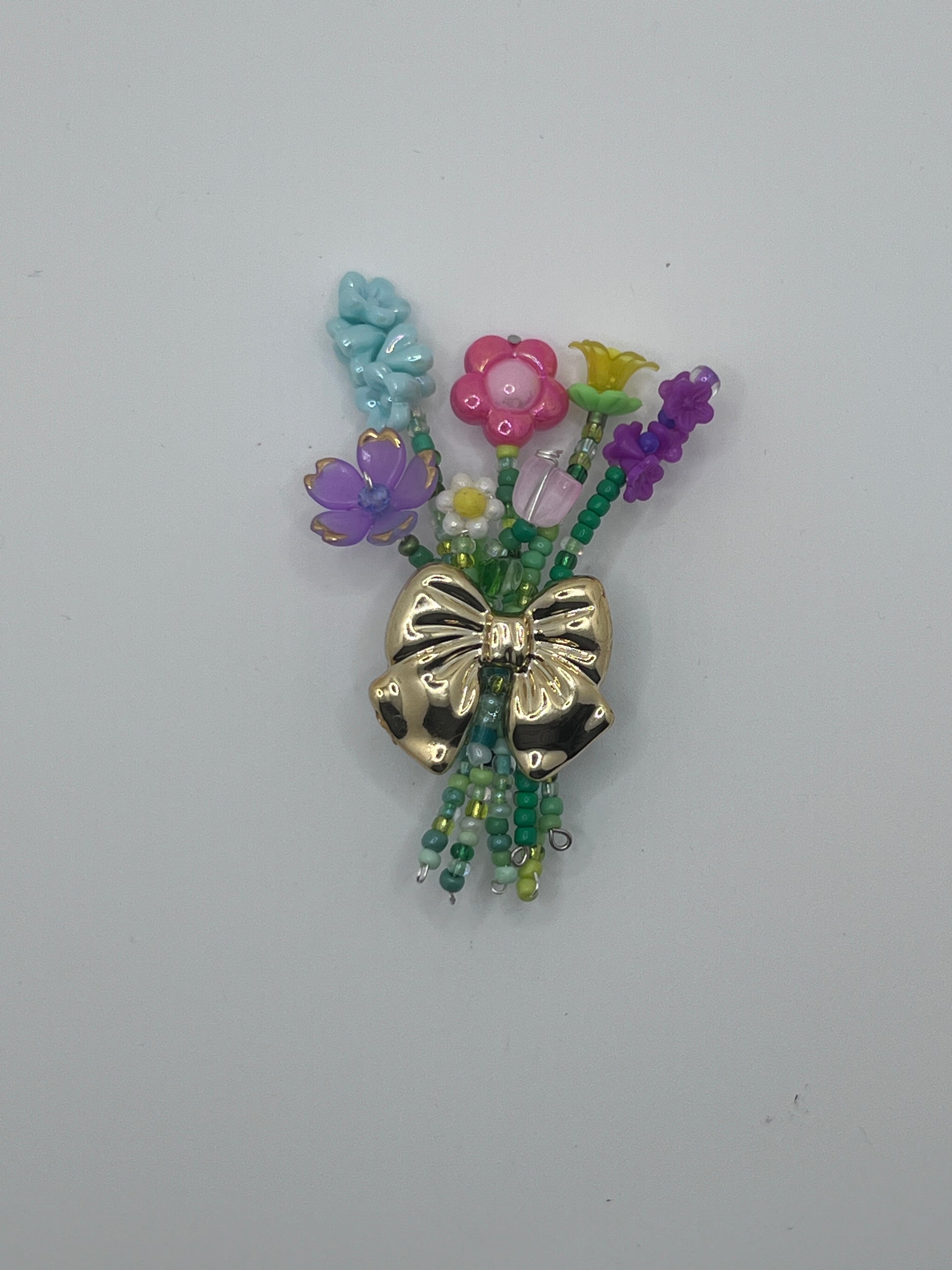 This bright and beautiful little bouquet of flowers will greet you every time you open your refrigerator! It is a lovely collection of blossoms made by my hand from wire and glass and plastic beads. The bow and UV resin holds it all together and it has a strong magnet on the back.