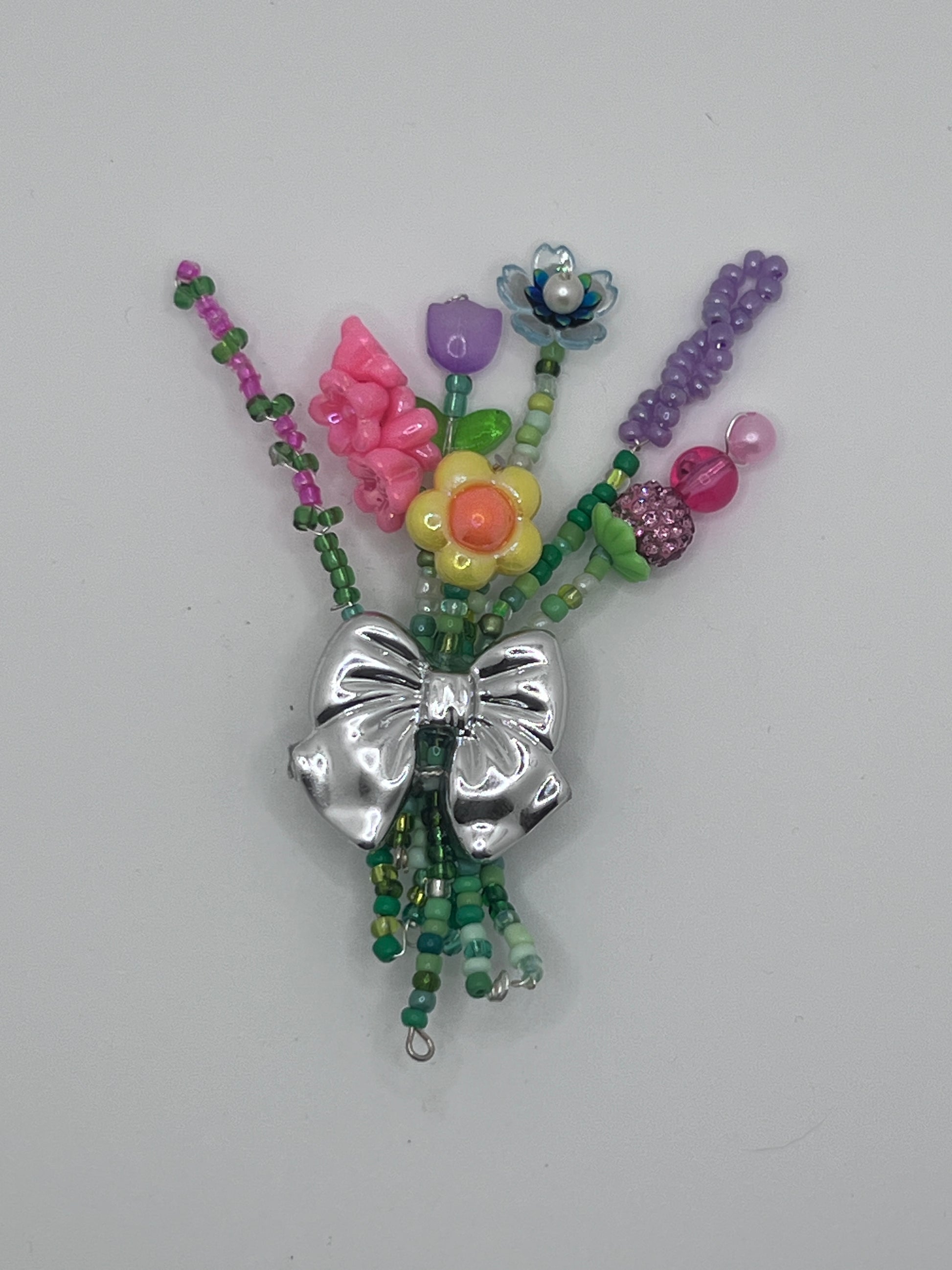 This bright & beautiful little bouquet of flowers will greet you every time you open your refrigerator! It is a lovely collection of blossoms made by my hand from wire and glass & plastic beads. The bow and UV resin holds it all together and with a strong magnet on the back. This will stick to any smooth, metal surface.